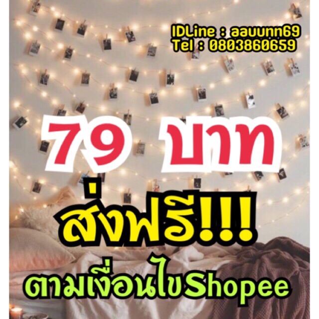 ส่งเคอรี่ (เก็บเงินปลายทาง) เมื่อยอดสั่งซื้อขั้นต่ำ 250 บาท หากไม่ถึงยอด ร้านค้าขอยกเลิกออเดอร์โดยไม่แจ้งนะคะ ถูกที่สุดในแอฟ พร้อมส่งมากค่ะ สิ้นค้ามี มอก. หัวปลั๊กอย่างหนา เสียบกับเต้าไฟบ้านเท่านั้น หากเสียบกับปลั๊กพ่วง ไฟอาจจะไม่สม่ำเสมอค่ะ ไฟ 100 ดวง 8 เมตร เส้นละ 79บาท ที่หนีบไม้ 30 ตัว 50 บาท สั่ง 5 เส้น แบบ ems กดเพิ่มค่าส่ง +20 นะคะ 1 เส้น ปรับระดับได้ทั้งกระพริบ และ ไม่กระพริบ ไฟหยดน้ำ 1 เส้น จะมี 100 ดวง มีความยาว 8 เมตร สามารถต่อให้ยาวได้ กันน้ำได้ยกเว้นเฉพาะตัวปลั๊กไฟ มีหลากหลายสีสันให้เลือกอาทิเช่น สีขาว เขียว แดง น้ำเงิน สลับสี สีวอมไวท์ และสีชมพู ใช้ปประดับตามงานเลี้ยง ต้นไม้ ต้นคริสมาส ศาลพระภูมิ ตกแต่งสวนงานปีใหม่ งานคริสมาสและเทศกาลต่างๆไฟประดับ หน้าร้านขายของ ตามระเบียงร้านค้าต่างๆ [ คุณสมบัติ ] กันน้ำได้ยกเว้นเฉพาะตัวปลั๊กไฟ กดเปลี่ยนจังหวะไฟกระพริบได้ ช้า เร็ว หรือให้สว่างตลอด ใช้งานง่าย ประหยัดไฟและทนทานคุ้มค่า 1 เส้นจะมี 100 ดวง 1 เส้นจะมีความยาว 8 เมตร มีหลากหลายสีสันให้เลือก มีสีขาว เขียว แดง น้ำเงิน เหลือง สลับสี สีวอมไวท์ และสีชมพู ประดับกลางเเจ้งได้ ประดับในร่ม ในอาคาร สำนักงานได้ ปลั๊กสามารถเสียบพ่วงต่อกันได้มีที่นี่ที่เดียว มี มอก. [ คุณสมบัติจำเพาะ ] -แรงดันไฟ 220V -ความยาว 8.5 M - ระยะระหว่างหลอด +/-9cm - วัสดุ พลาสติกใส ราคาส่งเริ่มที่ 50 เส้นนะคะ ทักแชทค่ะ