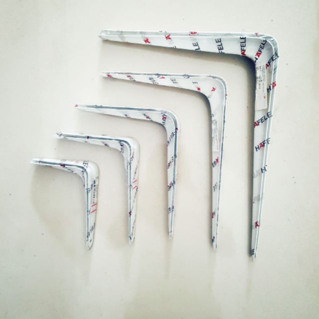 ฉากรับชั้นอย่างดี สีขาว ยี่ห้อ HAFELE มีหลากหลายขนาด 1. 75x100 mm. (3x4)แพคละ2อัน 2. 100x125 mm. (4x5)แพคละ1อัน 3. 125x150 mm. (5x6)แพคละ1อัน 4. 150x200 mm. (6x8)แพคละ2อัน 5. 200x250 mm. (8x10)แพคละ1อัน 6. 250x300 mm. (10x12)แพคละ1อัน 7. 300x350 mm. (1214)แพคละ1อัน ต้องใช้น็อตสกรูในการยึดตัวฉากกับฝาผนังนะคะ ในแพคไม่มีแถมน็อตสกรูมาให้นะคะ